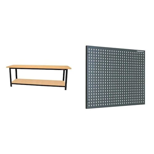 "Maximize sua eficiência com o Conjunto de Organização Profissional Presto, que inclui uma Bancada e Painel para Ferramentas em Aço. Projetado para atender às necessidades exigentes de qualquer ambiente de trabalho, este conjunto oferece uma solução completa para manter suas ferramentas organizadas e acessíveis. Transforme sua área de trabalho em um espaço organizado e produtivo com o Conjunto de Organização Profissional Presto. Garanta que suas ferramentas estejam sempre ao seu alcance, permitindo que você se concentre no que realmente importa: realizar o seu trabalho com excelência." Possui Portas: Não Altura do Conjunto: 92 cm Ambiente: null Ambiente Principal: Área de Serviço Cor: Preto Cor Predominante: Preto Informação Complementar: 1x Painel para Ferramentas em aço 725 x 575 mm com 24 Ganchos Plásticos Largura: 72.5 Peso: 2.117 Necessita Montagem: Sim