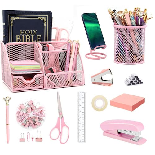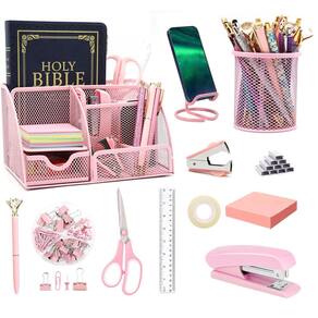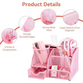 ?Organizadores e acessórios?Você receberá um conjunto de delicados organizadores e suprimentos de escritório, incluindo 12 peças de material de escritório, conforme mostrado na imagem principal. Se você quiser adicionar alguns toques elegantes ao seu espaço de trabalho, o organizador de mesa de metal e os suprimentos são perfeitos. -?Organizadores e acessórios?Você receberá um conjunto de delicados organizadores e suprimentos de escritório, incluindo 12 peças de material de escritório, conforme mostrado na imagem principal. Se você quiser adicionar alguns toques elegantes ao seu espaço de trabalho, o organizador de mesa de metal e os suprimentos são perfeitos. -?Maior espaço de armazenamento?Nosso organizador de mesa é maior do que outros designs similares no mercado e tem mais espaço de armazenamento. O maior compartimento traseiro pode acomodar facilmente até 280 folhas A4; O design de 6 compartimentos e 1 gaveta grande é suficiente para o uso diário no escritório. -?Economia de espaço para mesa?Os organizadores e armazenamento de mesa são adequados para casa, escritório, escola, etc. Para você colocar cadernos, pastas, canetas, lápis e outros materiais de mesa de escritório ou papelaria. Os organizadores de escritório para mesa também são bons para organizar. -?Artesanato premium?A combinação de artesanato em arame farpado e arame, adotando organizadores de mesa com acabamento em pó e tecnologia de galvanoplastia, resistentes ao desgaste e à prova de deslizamento. As bordas arredondadas dão ao seu espaço de trabalho uma aparência mais refinada e garantem sua segurança. -?Excelente atendimento ao cliente?Se você tiver alguma dúvida sobre nossos acessórios de mesa e organizadores de espaço de trabalho, , prometemos responder em 24 horas com uma solução satisfatória, você pode comprar com confiança.