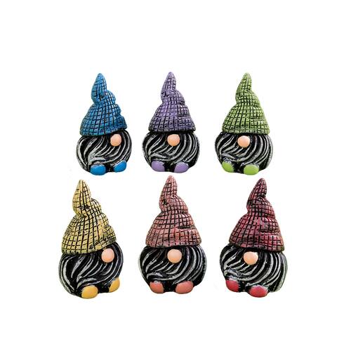 Material: Resina Tamanho: 3,5 × 2 cm Peso: 42 g ['Conjunto encantador de 6 figuras de gnomo: este adorável conjunto apresenta seis estátuas coloridas de gnomos, cada uma com um chapéu exclusivo de cores vivas, perfeito para adicionar um toque extravagante ao seu jardim ou quintal. ', 'Material de resina durável: Feitas com resina de alta qualidade, essas figuras de gnomo são construídas para resistir às condições externas, tornando-as adequadas para decoração interna e externa. ', 'Design divertido e lúdico: cada gnomo tem uma pose peculiar com chapéus coloridos e uma expressão amigável, trazendo personalidade e alegria ao seu jardim ou espaço ao ar livre. ', 'Ideal para decoração de gramado e pátio: essas encantadoras estátuas de gnomos são perfeitas para iluminar seus canteiros de flores, gramado, pátio ou jardim, adicionando uma atmosfera animada e divertida. ', 'Compactas e versáteis: com um tamanho de 3,5 × 2 cm, essas pequenas figuras de gnomos podem ser facilmente colocadas em vários locais, tornando-as uma excelente adição ao seu jardim em miniatura ou como um toque criativo à decoração da sua casa']