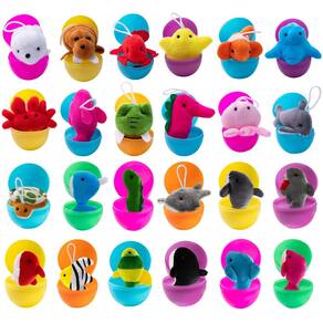 - Ovos surpresa com brinquedos para crianças. Diferentes mini pelúcias foram cuidadosamente preparadas nos ovos de plástico. Incluindo estrela do mar, água-viva, tubarão, golfinho, baleia, peixe-palhaço, caranguejo, polvo, lagosta, cavalo-marinho, peixe-morcego, leão marinho, foca, etc. Eles são super fofos e perfeitos.