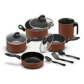Visual arrojado e moderno, este conjunto de panelas é fabricado em alumínio com teflon de 05 camadas que facilitam o seu dia-a-dia, deixando as refeições mais saudáveis e saborosas por não precisarem de muito óleo na preparação dos alimentos,Além da facilidade ao lavar após o uso.As tampas de vidro temperado e resistente, permitindo visualizar os alimentos durante o cozimento.Composição:01 Panela com cabo diametro 16 cm01 Panela com cabo diametro 18 cm01 Caçarola com alças diametro 18 cm01 Fervedor diametro 14 cm01 Frigideira Funda diametro 18 cm01 Espatula de Nylon01 Colher de Nylon01 Pegador de Massas de Nylon