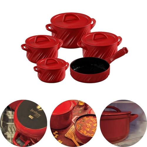 O conjunto de panelas ceraflame é fabricado em cerâmica e são muito versáteis. As panelas podem ir ao fogão, forno, micro-ondas, geladeira e lava-louças. Por ser fabricada em cerâmica mantém a temperatura por mais tempo, deixando a comida aquecida mesmo após ser retirada do fogo. Além disso, garante a ausência de contaminação dos alimentos e é fácil de limpar, podendo ser utilizado qualquer tipo de esponja ou produto específico para limpeza de utensílios.