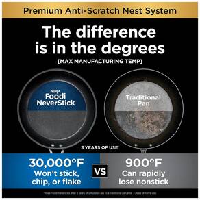 Diferença NeverStick: As panelas Ninja Foodi NeverStick não grudam, lascam ou descascam. Superaquecidas a 16.650°C, partículas de cerâmica de plasma são fundidas na panela, criando uma superfície texturizada que se entrelaça com o nosso revestimento exclusivo para uma aderência superior.