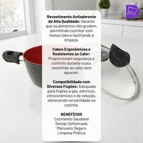 Prepare suas receitas com o conjunto de panelas Fullcommerce Conjunto Panelas Antiaderente Com Tampa De Vidro 04 Peças, ideal para o uso doméstico no dia a dia. Com corpo em alumínio e revestimento interno antiaderente, oferece praticidade no preparo e facilita a limpeza após o uso. As tampas de vidro temperado permitem acompanhar o cozimento sem removê-las, ajudando a manter a temperatura e o sabor dos alimentos, enquanto cabos e alças em material resistente ao calor garantem manuseio mais seguro. As quatro peças, incluindo caçarola, panelas e frigideira em diferentes diâmetros, atendem a diversos tipos de preparo, de ensopados a frituras leves. Com acabamento nas cores preto e vermelho, o conjunto combina eficiência e visual moderno para diferentes estilos de cozinha.