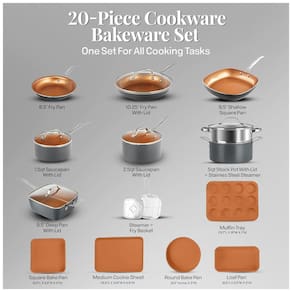Cozinha completa em uma caixa inclui um conjunto completo de frigideiras, potes de caldo, panelas de molho, assadeiras, vaporizadores e muito mais. O premiado revestimento Ti Cerama garante a liberação final tudo simplesmente desliza para fora da panela, sem necessidade de óleo ou manteiga Ultra durável, à prova de arranhões e para utensílios de metal Observe que este produto pode chegar na embalagem de varejo ou em uma caixa reciclável ecologicamente correta O design leve proporciona uma experiência culinária confortável Forno até 260 C, as panelas e frigideiras são adequadas para todos os fogões de mesa, exceto indução Adequado para máquina de lavar louça para uma limpeza sem esforço Os punhos para ficar frio são frios ao toque Livre de toxinas Todos os produtos Gotham Steel são livres de PTHE, PFOA e PFOS As panelas Gotham Steel são construídas para anos de uso. Componentes incluídos conjunto de panelas e assadeiras