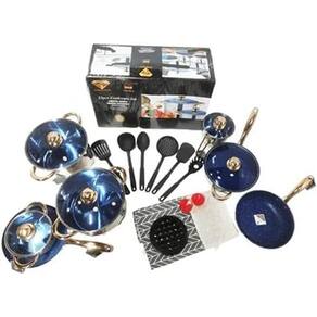 Conjunto de Panelas Antiaderente Teflon 23 peças com Avental Jogo de Panelas Alemãs - Aço Cirúrgico 23 Peças - Luxo Azul