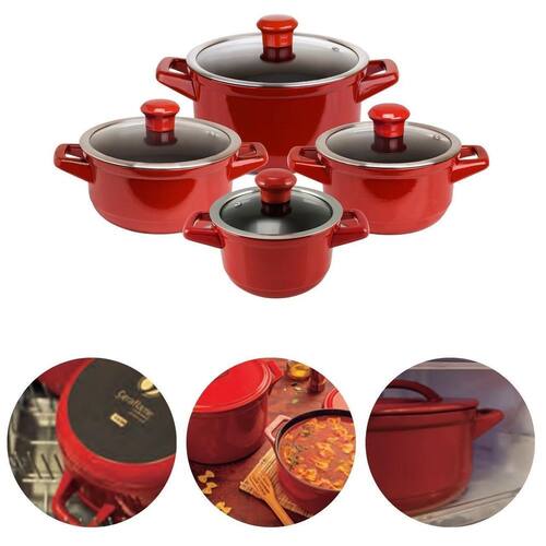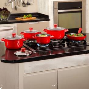 Contém: 01 Caçarola de 14cm 0,9 litros com tampa de vidro. 01 Caçarola de 16cm 1,1 litros com tampa de vidro. 01 Caçarola de 18cm 1,5 litros com tampa de vidro. 01 Caçarola de 20cm 2,5 litros com tampa de vidro.