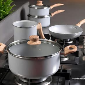 Conjunto De Panelas Ceramic Life Easy Brinox 5 Peças Cor: Cinza Claro Conjunto De Panelas Ceramic Life Easy Brinox 5 Peças