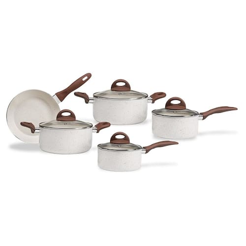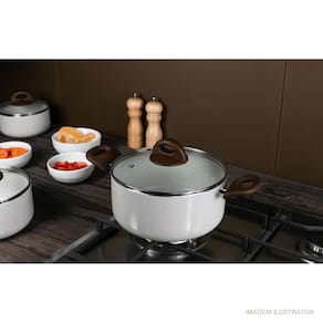 O Conjunto de Panelas Ceramic Life Smart Plus Brinox com 5 Peças Vanilla possui estrutura em alumínio, facilitando o cozimento uniforme. Revestimento cerâmico não deixa o alimento grudar, facilita a limpeza e é livre de metais pesados e elementos prejudiciais a saúde (PFOA free).