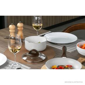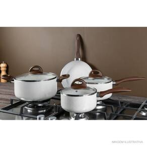 - 01 Caçarola com tampa Ø22x10,5 cm- 3,55L - 01 Caçarola com tampa Ø20x9,5 cm - 2,55L - 01 Panela com tampa Ø18x9 cm - 1,55L - 01 Panela com tampa Ø16x8 cm - 1,25L - 01 Frigideira Ø22x4,5 cm - 1,1L