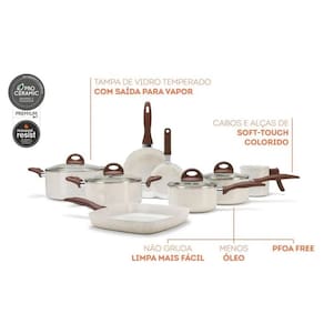 O Conjunto de Panelas 8 Peças Ceramic Life Smart Plus Vanilla Brinox vai deixar a sua cozinha mais completa! Com a nova geração de antiaderente cerâmico: a Pro Ceramic Premium, estão mais resistentes, livres de metais pesados e elementos químicos prejudiciais à saúde, exigem menos óleo e não deixam os alimentos grudarem. Ao cozinharem os alimentos por igual e por serem de fácil limpeza, elas facilitam a rotina na cozinha. Os cabos e alças têm revestimento Soft-Touch, não esquentam e têm um toque macio, e as tampas são de vidro temperado com saída para o vapor.