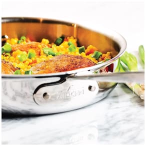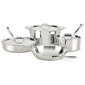 Este conjunto de panelas e frigideiras é feito com a excepcional construção tripla AllClad D3, que consiste em duas camadas de aço inoxidável durável pressionadas juntas com um núcleo de alumínio responsivo, garantindo distribuição uniforme de calor para cozinhar. O conjunto inclui uma frigideira, uma panela e uma panela com tampas correspondentes, além de uma frigideira adicional. Cada peça é feita à mão nos EUA com aço inoxidável ultradurável que durará a vida toda e nunca sairá de moda. Além disso, essas panelas são versáteis e podem ser usadas em fogões a gás, elétricos ou de indução, forno ou grelha. As alças clássicas de aço inoxidável com rebites duplos garantem uma aderência segura. Este conjunto completo de 7 peças em aço inoxidável inclui uma frigideira de 25 cm, uma panela de 1,87 litros com tampa, uma frigideira de 2,80 litros com tampa e uma panela de 5,60 litros com tampa. A superfície de aço inoxidável 1810 de alta qualidade queima perfeitamente e é ideal para desengordurar molhos em frigideiras. Este conjunto de panelas e frigideiras é lavável à mão e é construído para durar, confiável por gerações de chefs.