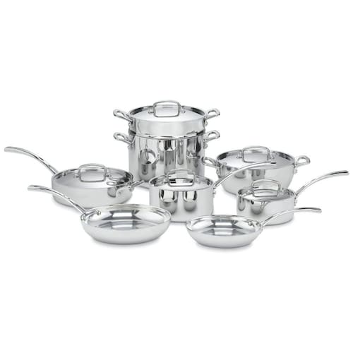 INCLUI panela de 1,5 litros com tampa, panela de 2,5 litros com tampa, frigideira de 3 litros, frigideira francesa de 8 polegadas, frigideira francesa de , forno holandês de 4,5 litros com tampa, panela de 8 litros com tampa, de inserção de macarrão DESIGN EXCEPCIONAL Desfrute de acabamento espelhado, aparência clássica e desempenho profissional A base encapsulada em alumínio aquece rapidamente e distribui o calor uniformemente eliminando pontos quentes MANIPULAÇÃO EXCEPCIONAL As alças frias são alças rebitadas de aço inoxidável sólido que permanecem frias no fogão e fornecem uma aderência segura e sólida LIMPEZA Lavável na máquina de lavar louça para uma limpeza fácil