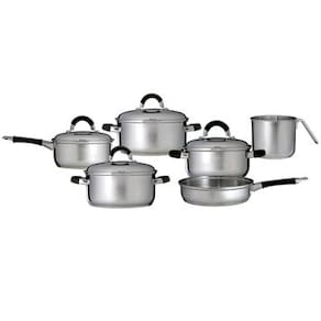 A Euro Home é uma empresa que fabrica utilidades domésticas como nenhuma outra. Prova disso está neste lindo e eficiente conjunto de panelas, equipado com seis peças diferentes, todas elas em aço inox.