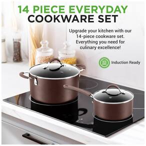 REVESTIMENTO ANTI ADERENTE O conjunto de panelas antiaderente sem PTFE, PFOA, PFOS apresenta um revestimento antiaderente de longa duração para fácil liberação ou lançamento de alimentos, limpeza e cozimento saudável com exterior de laca resistente ao calor, tornando o resistente a altas temperaturas. Pegas de alça de toque frio o conjunto de panelas apresenta alças ergonômicas e resistentes ao calor de toque frio, garantindo um cozimento confortável e . Oferece design metálico elegante com bordas de aço inoxidável polido anti riscos, adicionando um toque elegante às panelas e frigideiras. TAMPAS TRANSPARENTES As panelas antiaderentes seguras para forno são equipadas com tampas transparentes de vidro temperado com orifícios de ventilação que permitem a saída do vapor. O conjunto de panelas seguras para lava louças distribui e retém o calor de forma eficaz para cozinhar uniformemente com temperatura máxima de 260C. PRONTO PARA INDUÇÃO Essas panelas e frigideiras são seguras para uso em bancadas a gás, elétricas, antiaderentes e de indução. Feito de alumínio prensado reforçado com espessura de revestimento de 18 25um, multicamadas de 2,. Inclui utensílios de silicone de nylon sem arranhões