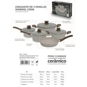 A linha mármol cook possui 3 camadas, 2 camadas de revestimento