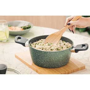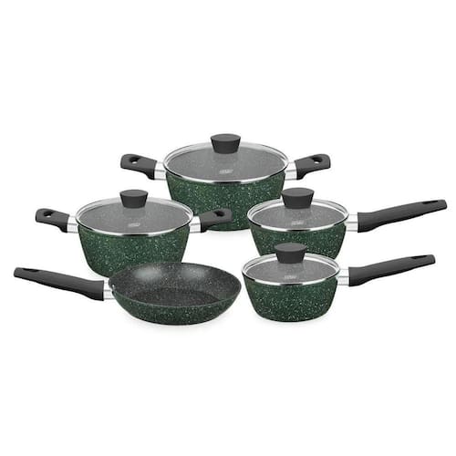 Com um design elegante e moderno, o conjunto de panelas Carmela Vanila vai dar um toque de estilo à sua cozinha. A cor creme e verde trazem um ar de sofisticação, combinando perfeitamente com qualquer decoração.