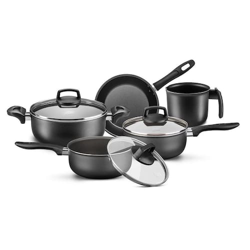 Itens do conjunto: 01 Panela com tampa de vidro 1,6 Litros 01 Panela com tampa de vidro 2,0 Litros 01 Caçarola com tampa de vidro 3,4 Litros 01 Frigideira Francesa 1,25 Litros 01 Fervedor sem tampa 1,3 Litros