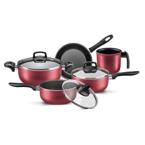 O Jogo de Panelas MTA Supra é sinônimo de praticidade e beleza. Este lindo, prático e funcional conjunto de panela é perfeito para você preparar pratos deliciosos. Suas peças são feitas com material de alta qualidade e durabilidade. Revestidas com Antiaderentes 05 camadas não deixam o alimento grudar agilizando o preparo de suas receitas. Acrescente mais qualidade e beleza a sua cozinha com o conjunto MTA. Marca: MTA Linha: Supra Colors Modelo: Madri Cor: Cereja Composição: Corpo: Alumínio Alças: Baquelite Tampo: Vidro Temperado Revestimento: Antiaderente SuperFlon 5 camadas. Itens do conjunto: 01 Panela com tampa de vidro n16 01 Panela com tampa de vidro n18 01 Caçarola com tampa de vidro n20 01 Frigideira Francesa n20 01 Fervedor sem tampa n12 Peso aproximado da embalagem: 3,7 kg Dimensões aproximadas da embalagem: 55 x 43 x 13 Instruções de Uso: Aconselhamos a não usar as panelas sem óleo, sempre uma colher pequena de manteiga ou óleo pode ser usada a seu critério para dar um sabor a seu gosto, e evitar que o revestimento queime. Conselhos de Uso: Utilize somente utensílios de madeira, nylon ou silicone. Evite cortar alimentos diretamente na panela. Não risque a superfície antiaderente. Pequenos riscos ou marcas de abrasão são normais e não afetam a desempenho do revestimento antiaderente. Não deixe sua panela vazia no fogo. Evite que a chama incida sobre a lateral da panela. Deixe sua panela esfriar antes de lavar. Recomendamos sempre utilizar fogo brando, fogo alto é desnecessário e pode danificar a panela.