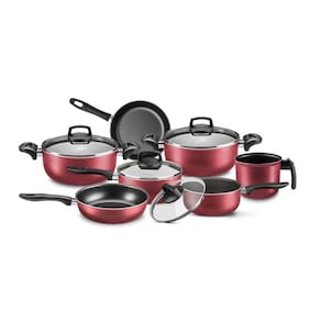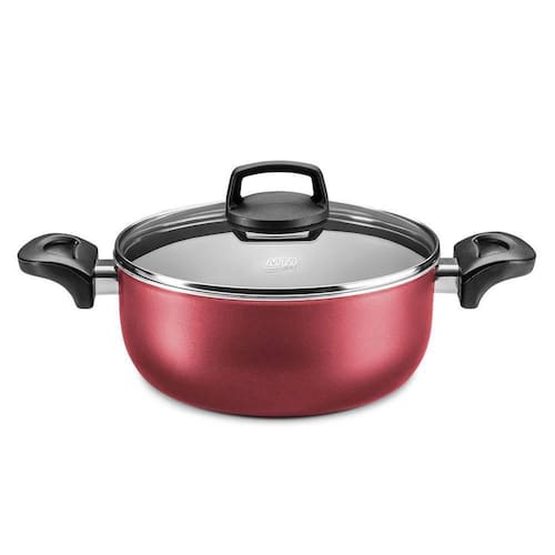 O Jogo de Panelas MTA Supra é sinônimo de praticidade e beleza. Este lindo, prático e funcional conjunto de panela é perfeito para você preparar pratos deliciosos.Suas peças são feitas com material de alta qualidade e durabilidade. Revestidas com Antiaderentes 05 camadas não deixam o alimento grudar agilizando o preparo de suas receitas.Acrescente mais qualidade e beleza a sua cozinha com o conjunto MTA.Marca: MTALinha: Supra ColorsModelo: MadriCor: Cereja / Código: 5680Corpo: Alumínio com revestimento antiaderenteAlças: Baquelite / AntitérmicosTampas: Vidro Temperado com saída de Vapor / Aro Aço InoxRevestimento: Antiaderente SuperFlon 5 camadas livre de PFOA ácido perfluoroctanóico perfluorooctanoic acid/PFOA .Itens do conjunto:01 Panela com tampa de vidro n1601 Panela com tampa de vidro n1801 Caçarola com tampa de vidro n2001 Caçarola com tampa de vidro n2201 Frigideira Francesa n2001 Frigideira Alta n2201 Fervedor n12