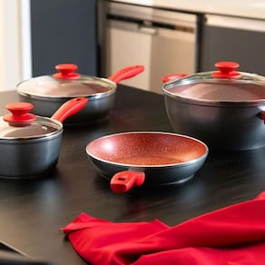 O Conjunto de Panelas Philco Redstone PKT407, composto por 4 peças, se destaca pelo revestimento cerâmico de alto poder antiaderente Redstone. Essa característica permite preparar alimentos sem grudar, tornando a limpeza mais fácil. Além disso, as panelas são versáteis e compatíveis com todos os tipos de fogões, como elétricos, a gás, radiante, indução e vitrocerâmicos. O cabo de baquelite, revestido com material emborrachado, proporciona segurança ao cozinhar, evitando queimaduras nas mãos. A espessura do fundo, de 4,5mm, contribui para uma distribuição mais eficiente e rápida do calor, mantendo a temperatura por mais tempo. Com espessura de 3,5mm, as panelas garantem durabilidade excepcional ao produto. Experimente a qualidade e praticidade do Conjunto de Panelas Philco Redstone PKT407 em sua cozinha.