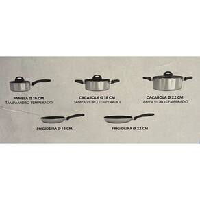 Elegancia, resistencia e desempenho reunidos em um unico conjunto. O Conjunto de Panelas Soft Delux traz o equilibrio perfeito entre design sofisticado e praticidade, com acabamento em preto e prata brilhante que transforma sua cozinha em um ambiente moderno e funcional. Diferenciais do produto: Apto para todos os tipos de fontes de calor: gas, eletrico, vitroceramico e inducao. Revestimento antiaderente premium: evita que os alimentos grudem e facilita a limpeza. Cabos soft touch: garantem conforto, firmeza e seguranca no manuseio. Tampas de vidro com saida de vapor: permitem visualizar o preparo sem perder calor. Composicao do conjunto: Cacarola 22 cm Cacarola 18 cm Panela 16 cm Frigideira 22 cm Frigideira 18 cm Ideal para quem busca qualidade, durabilidade e um toque de sofisticacao em cada refeicao. Marca: Não Informado