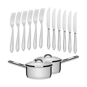 Muito importante:-- conferir produtos no ato do recebimento. Não aceitar produtos com embalagem violada amassado, rasgado, aberto, quebrado, etc , a recusa deve ser feita no ato.Conjunto de panelas solar 16cm 1,4l com 60 talheres de mesa laguna tramontinacomponentes do kit:30 un - 63906180 faca para churrasco laguna em aço inox - tramontina30 un - 63906020 garfo de mesa laguna em aço inox - tramontina2 un - 62501160 panela em aço inox linha solar fundo triplo 16 cm 1,4l pit7 - tramontina--- faca para churrasco laguna em aço inox - tramontina 63906180garantia: 90 dias para vícios ou defeitos de fabricação- ideal para restaurante, lancheria, paderia, linha doméstica, residência, gourmet- acabamento em brilho, com detalhes no cabo- própria para uso diário combina com qualquer ambiente- pode ser lavada diariamente na máquina de lavar louças- peso líquido: 0,043 kg- peso bruto: 0,045 kg- dimensões embalagem : 0,8cm a x 2cm l x 23cm p- dimensões produto : 0,3cm a x 1,8cm l x 21cm p- espessura: 3,0 mm--- garfo de mesa laguna em aço inox - tramontina 63906020garantia: 90 dias para vícios ou defeitos de fabricação- ideal para restaurante, lancheria, paderia, linha doméstica, residência, gourmet- próprio para uso diário combina com qualquer ambiente- pode ser lavado diariamente na máquina de lavar louças- peso líquido: 0,032 kg- peso bruto: 0,035 kg- dimensões embalagem: 2cm a x 2,5cm l x 20cm p- dimensões produto : 1,9cm a x 2,3cm l x 19,3cm p- espessura: 1,6 mm--- panela em aço inox linha solar fundo triplo 16 cm 1,4l pit7 tramontina 62501160garantia: 90 dias para vícios ou defeitos de fabricação- pode ir ao forno em temperatura máxima de 260c, podendo haver mudança na coloração.- produto com certificação compulsória certificada pela ocp 0104- pcn do brasil, registro 001470/2018, conforme portaria inmetro 419/2012.Especificações técnicas:- altura sem tampa: 8cm- altura com tampa: 11cm- diâmetro externo: 18cm- diâmetro interno: 16cm- altura interna: 7cm- largura total: 33cm
