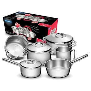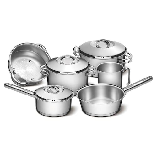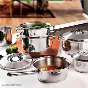 - Um clássico da Tramontina, a Solar é símbolo de durabilidade e praticidade. - Totalmente feitas em aço inox, por isso não solta nenhum resíduo nos alimentos, mantendo-os saudáveis. - Altamente durável, mantém suas características originais, preservando a beleza, a higiene e a durabilidade do material. - O fundo triplo (aço inox + alumínio + aço inox) distribui o calor uniformemente, proporcionando um cozimento mais rápido e uniforme, economizando energia e deixando os alimentos aquecidos por mais tempo.- Podem ir ao forno para gratinar ou finalizar pratos, na temperatura máxima de 260°C. - Design diferenciado e moderno, com acabamento em alto brilho. - Desenho limpo e sem cantos torna a limpeza mais fácil. - Tampas com saída de vapor e encaixe perfeito. - Podem ser lavadas diariamente na máquina de lavar louças.- As panelas podem ser utilizadas nos fogões: gás, elétrico, vitrocerâmico e indução.- O fervedor não é indicado para o fogão à indução.