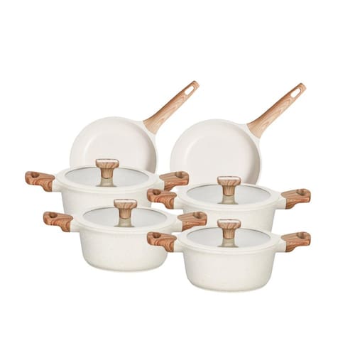 Conjunto de Panelas Titanium Natural MTA - 6 Peças Transforme sua cozinha em um ambiente de estilo e praticidade com o Conjunto de Panelas Titanium Natural Bege MTA. Produzidas com revestimento interno antiaderente de alta performance, as peças permitem preparar alimentos com menos óleo, garantindo refeições mais saudáveis e uma limpeza rápida e fácil. Com design moderno na cor bege e cabos tom amadeirado, as panelas unem sofisticação e funcionalidade. As tampas em vidro temperado com saída de vapor possibilitam acompanhar o cozimento sem perder sabor e nutrientes, trazendo mais eficiência ao preparo. Ideal para quem busca qualidade, durabilidade e beleza, o conjunto é perfeito tanto para o dia a dia quanto para ocasiões especiais. Diferenciais: Revestimento antiaderente durável: menos óleo, mais saúde Cabos e pegadores com efeito madeira: elegância + segurança Tampas em vidro temperado com saída de vapor Design sofisticado que valoriza sua cozinha Conjunto completo para diversas receitas Conteúdo do Conjunto: 02 Frigideira 24 02 Caçarola 20 cm com tampa de vidro 02 Caçarola 24 cm com tampa de vidro Ideal para: Quem deseja unir beleza, praticidade e resistência em um só conjunto de panelas, perfeito para facilitar o dia a dia e deixar a cozinha ainda mais charmosa. Marca: Não Informado