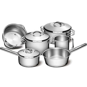 O desenho limpo e sem cantos torna a limpeza muito mais fácil. Totalmente feitas em aço inox, não soltam nenhum resíduo nos alimentos, mantendo-os saudáveis. A tampa das panelas possui dois furos para saída de vapor, não permitindo a formação de vácuo. Este produto faz parte da linha Harmonia, que é inspirada nas reuniões de família, na combinação de sabores e na escolha dos ingredientes. Linha caracterizada por design moderno. O conceito gráfico das embalagens retrata ingredientes encontrados no mundo todo, que juntos formam a combinação perfeita.