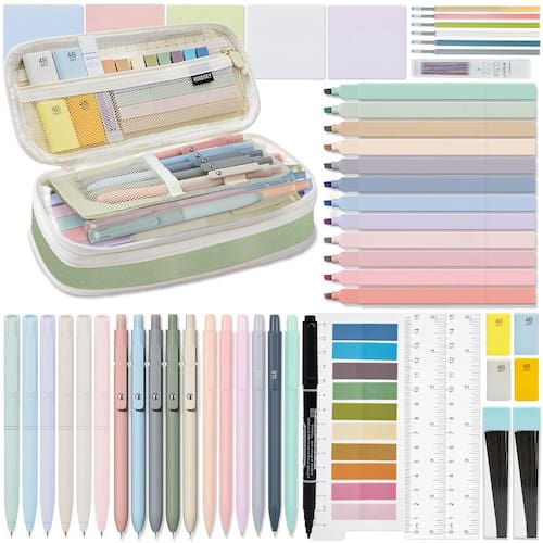 Conjunto de 52 peças de papelaria Ultimate College and Bible Journaling ?: Conjunto de 52 peças de papelaria Ultimate College e Bible Journaling Este conjunto abrangente de papelaria inclui todos os itens essenciais que você precisa para estudos universitários e diários bíblicos. Com 12 marcadores bíblicos em cor pastel, 6 canetas de gel pretas e coloridas, 6 lapiseiras automáticas (0,5 mm), 6 recargas e 4 borrachas, este conjunto é perfeito para anotações criativas e anotações da Bíblia. Também inclui um estojo de lápis durável de grande capacidade, 5 blocos de notas, 1 nota adesiva transparente, 2 réguas e um marcador preto — ideal para organizar sua escola e materiais de estudo da Bíblia ?: Estojo de lápis espaçoso e durável com suprimentos. O estojo de lápis grande é projetado para armazenar mais de 100 itens, mantendo todos os seus artigos de papelaria organizados e de fácil alcance. Seja para materiais escolares universitários ou materiais de estudo da Bíblia, o zíper suave e o design expansível garantem fácil acesso a todos os seus itens essenciais. Este estojo de lápis com suprimentos é perfeito para estudantes e entusiastas de diários bíblicos que precisam de uma solução de armazenamento elegante e prática. ?: Ferramentas de escrita de alta qualidade para estudos bíblicos e universitários Este kit inclui 12 marcadores bíblicos, que são perfeitos para destacar escrituras sem sangrar pelas páginas, e 5 canetas de gel pretas que oferecem escrita suave e clara para notas de estudo ou anotações. Os 6 lápis mecânicos (0,5 mm) vêm com recargas coloridas de grafite, facilitando a alternância entre tarefas de escrita e desenho, perfeitas para material escolar universitário e anotação da Bíblia. ?: Conjunto de material escolar estético e funcional. De diários bíblicos a notas de aula, este lindo conjunto de papelaria inclui tudo o que você precisa. Os marcadores bíblicos pastel, canetas de gel coloridas e lapiseiras são práticos e visualmente atraentes. As réguas, notas adesivas e marcador preto incluídos adicionam funcionalidade extra, tornando este um conjunto estético e versátil para estudantes universitários e entusiastas do estudo da Bíblia. ?: Presente perfeito para voltar às aulas ou estudo da Bíblia Este conjunto de artigos de papelaria de 52 peças é um presente fantástico de volta às aulas para estudantes universitários ou um kit de estudo bíblico atencioso para aqueles que procuram aprimorar seus estudos das escrituras. Com marcadores bíblicos, lápis mecânicos e uma variedade de materiais de estudo, atende a todas as suas necessidades acadêmicas e espirituais, oferecendo praticidade e estilo em um pacote completo. - Kit de material escolar universitário com 52 peças: este conjunto definitivo de papelaria é ideal para diários bíblicos e estudos universitários. Inclui 12 marcadores bíblicos em cor pastel, 5 canetas de gel pretas, 6 canetas de gel coloridas, 6 recargas, 6 lápis mecânicos de 0,5 mm, 4 borrachas, abas de livro coloridas, 5 blocos de notas adesivas quadrados, 2 réguas de polegadas e um marcador preto. Com tudo o que você precisa para anotações de livros e anotações, este conjunto é perfeito para estudo da Bíblia, aula ou diário criativo. - ?Estojo de lápis de grande capacidade?O estojo de lápis incluído oferece armazenamento enorme com espaço suficiente para armazenar mais de 100 itens. Seu tecido durável e zíper suave garantem uso duradouro, e seus compartimentos organizados mantêm todos os seus materiais de estudo bem organizados. Seja para material escolar universitário ou como parte de um kit de diário bíblico, esta bolsa espaçosa facilita o transporte de tudo o que você precisa para se manter organizado e focado. - Conjunto de canetas de gel vibrantes e suaves: este conjunto inclui 5 canetas de gel pretas e 6 canetas de gel coloridas, todas projetadas para escrita suave e cores vibrantes. Seja fazendo anotações, escrevendo em seu diário ou trabalhando em projetos criativos, essas canetas fornecem linhas limpas e precisas sem manchas. As canetas de gel coloridas são perfeitas para organizar suas anotações e criar destaques em seu estudo bíblico ou trabalho de aula. Recargas extras garantem uso duradouro. - ?12 marcadores bíblicos pastéis macios?Estes 12 marcadores bíblicos pastel são projetados para fornecer destaques suaves e sem manchas que não vazam pelas páginas. A tinta de secagem rápida é perfeita para sublinhar escrituras importantes ou anotar textos. Estes marcadores são essenciais para qualquer pessoa envolvida no estudo da Bíblia ou anotação de livros. Suas pontas versáteis de cinzel permitem sublinhado fino e destaque amplo. - ?Perfeito para voltar às aulas e estudo da Bíblia?Este conjunto de papelaria esteticamente projetado é um presente fantástico de volta às aulas para estudantes ou como um kit de estudo bíblico atencioso. Com 52 itens cuidadosamente selecionados, este conjunto combina beleza e funcionalidade, tornando-o um companheiro ideal para escola, trabalho ou diário bíblico. Não é apenas um kit de material escolar, mas também uma ótima maneira de adicionar charme e conveniência à sua rotina diária.