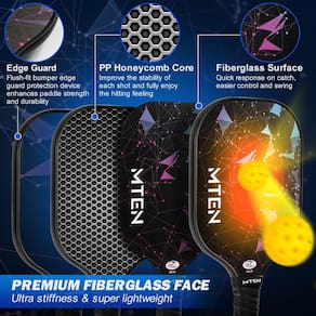 A USAPA aprova a raquete de pickleball. -?Raquete de pickleball aprovada pela USAPA?As raquetes são aprovadas pelos EUA e com aprovação da USAPA, com alta segurança e profissionalismo, e podem ser usadas em torneios. -?Pás de pickleball de qualidade premium?O conjunto de pás de pickleball foi projetado com tecnologia exclusiva de núcleo em forma de favo de néctar das flores de fibra de vidro e polipropileno. Fornece potência e controle excepcionais. A tecnologia de favo de néctar das flores de polipropileno reduz a vibração e atinge uma velocidade estável, resultando em uma sensação ideal de golpe de bola. A superfície de fibra de vidro oferece excelente desempenho rotacional. A raquete de pickleball é leve, forte e durável. -?Aderência ergonômica confortável?O conjunto de bolas Pickle foi projetado para ser perfurado, absorvente de suor e acolchoado. Ele pode ajudar os usuários a segurar melhor a empunhadura e fornecer amortecimento. A circunferência da empunhadura de 4,57" permite espaço suficiente para o máximo encaixe do pulso, proporcionando potência, rotação e amplitude de movimento em seu pulso. -?Raquetes de pickleball leves e largas?A ampla área de raquetes de pickleball oferece mais pontos ideais para a tacada perfeita. Ótimas raquetes de pickleball para jogadores iniciantes, intermediários e profissionais. A raquete pesa entre 7,78 e 7,8 onças, o que a coloca na faixa de peso médio. -?Conjuntos completos de pickleball?Inclui 2 pás de pickleball, 4 bolas de pickle para uso externo, 1 bolsa de transporte e 2 fitas adesivas. Um presente de pickelball perfeito para iniciantes e profissionais!