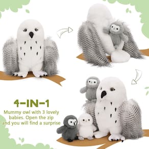 "Traga para casa o encantador conjunto de pelúcia de coruja Karister de 4 peças, uma coleção encantadora com uma coruja-mãe gigante de 45,7 cm e seus três adoráveis bebês corujas. Este conjunto encantador é projetado para capturar os corações de crianças e adultos, tornando-o um presente perfeito para qualquer ocasião. Feitos de tecido de pelúcia ultramacio premium, estes bichos de pelúcia de coruja não são apenas incrivelmente fofos, mas também feitos para durar. O design realista apresenta detalhes intrincados, fazendo com que essas pelúcias se destaquem como brinquedos e peças decorativas. Se você está procurando um presente exclusivo para um chá de bebê, Natal ou aniversário, este conjunto de pelúcia de coruja certamente trará sorrisos e calor a qualquer ambiente. Seguro para crianças e feito com materiais duráveis, o conjunto de pelúcia Karister Owl é perfeito para brincadeiras, decoração de berçário ou como uma lembrança atenciosa. Além disso, estimula brincadeiras interativas e educativas, ajudando as crianças a desenvolver a criatividade e habilidades sociais por meio de narrativas imaginativas e interpretação de papéis. Adicione um toque de charme e diversão à sua vida com esta adorável coleção de mãe e bebê coruja!" - Adorável conjunto de família: este conjunto de pelúcia de coruja Karister 4 peças inclui uma coruja-mãe gigante de 45 cm e três corujas fofas, perfeitas para criar brincadeiras emocionantes ou cenas decorativas. - Animal de pelúcia interativo e educativo: incentive brincadeiras imaginativas e aprendizado com esta família de corujas! As crianças podem criar histórias, encenar e desenvolver habilidades sociais e emocionais enquanto se unem à mãe coruja e seus bebês. - Detalhes realistas: com designs complexos e realistas, estas corujas de pelúcia são criadas para se assemelhar a criaturas encantadoras da floresta, tornando-as uma escolha de destaque para entusiastas da natureza, colecionadores e qualquer pessoa que ame presentes adoráveis com temas de animais. - Ideia de presente perfeita: ideal para Natal, aniversários, chás de bebê ou qualquer ocasião especial, este conjunto de pelúcia de coruja traz alegria e charme para crianças, meninas, meninos e até mesmo decoração de berçário. - Material macio e seguro premium: Feito de tecido de pelúcia ultramacio de alta qualidade e projetado com materiais seguros para crianças, estes brinquedos de pelúcia de coruja são suaves ao toque, duráveis e construídos para suportar infinitos abraços e abraços.