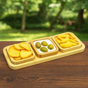 A petisqueira de bambu com 4 peças é a escolha perfeita para quem deseja servir com elegância e praticidade. Produzida em bambu natural, ela traz um toque sofisticado e acolhedor à mesa, destacando-se pela beleza e pela durabilidade do material.