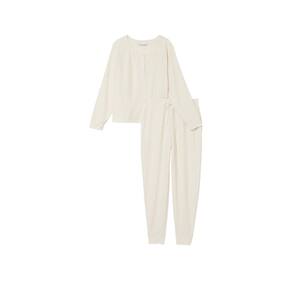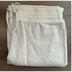 Tecido macio e aconchegante com textura waffle. Camisa henley de botões e calça jogger combinando, perfeito para relaxar durante toda a estação.