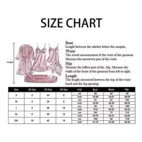 Descrição: Características: jogo de 5 pijamas sexy para mulher com painéis de embalagem acetinados, conjunto de pijama de casamento, pijama de noite, tamanho: S-2XL Cores: vinho vermelho, cinza, azul marinho, preto e rosa. Material: poliéster O pacote inclui: conjunto de pijama. Instruções de cuidado: lavar à mão. Nota: você pode ter um erro de 1 a 3 cm devido à medição manual.