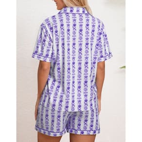 Feita a partir de uma mistura modal de algodão luxuosa, a camisa de botão com gola V e shorts de cintura elástica combinando oferecem conforto leve e um visual elegante; as estampas oceânicas divertidas trazem vibrações costeiras, tornando o conjunto de pijamas de algodão para mulheres ideal para férias na praia, noite das meninas ou relaxar no fim de semana