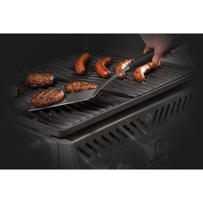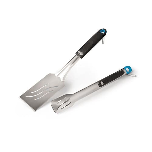 Este conjunto de ferramentas Napoleon de 2 peças é fabricado em aço inoxidável e possui uma pegada ergonômica de toque suave nas duas alças. A espátula extra longa pode virar e girar facilmente qualquer coisa que você deseja grelhar, manuseando facilmente os alimentos com sua borda serrilhada e ponta laminada. O puxador da pinça trava e destrava facilmente e essas duas ferramentas de churrasco podem ser armazenadas graças aos furos na parte superior.