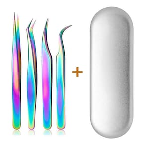 As pinças de extensão de cílios são uma ferramenta profissional para aplicação de extensão de cílios, pinças para pêlos encravados, 4 pinças pontiagudas diferentes para atender a todos os requisitos, são perfeitas para separar, isolar e pegar cílios pequenos e extensões de cílios 3D 6D Volume Mink.