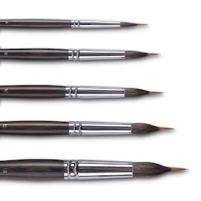 Perfeitos para aquarelistas que exigem precisão e eficiência em suas ferramentas, esses pincéis mantêm um fluxo consistente da primeira à última pincelada. A construção híbrida supera os montadores tradicionais, oferecendo capacidade superior de pintura sem sacrificar a capacidade de linha fina.