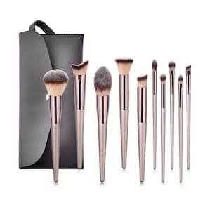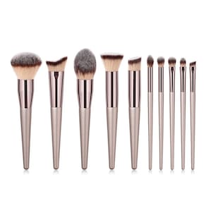 Conjunto de 10 pincéis de maquiagem de champanhe, base, pó, blush, corretivo de sombras, lábios e olhos, pincel de maquiagem, cosméticos, ferramentas de beleza