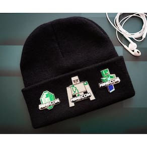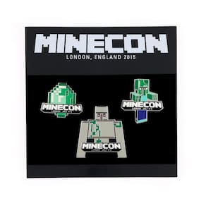 Conjunto de edição limitada de 3 pinos de Minecraft cada com a palavra minecon em (e em Letras menores embaixo "Londres de julho de 4 – 5 "). Se você estivesse um minecon participantes, você tem um pino Fourth em sua bolsa para completar sua coleção.