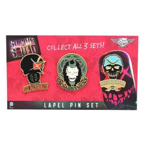 Prepare-se para a ação com o Esquadrão Suicida lapela conjunto 1. Este conjunto de 3 pinos fixa o pino de embreagem às suas roupas com uma borboleta nas costas. Inclui 3 pinos: para o, Pistoleiro, e encantadora. pinos medir até 1 1/2-inches altura. Idades acima de 13 anos.