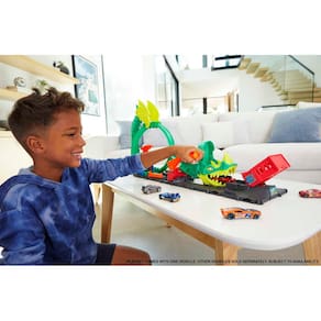O conjunto Hot Wheels Toy Car Track Set City Dragon Drive Firefight e Toy Firetruck em escala 1:64, Nemesis Play with Loop & Fire Station, se conecta a outros sets - Salve Hot Wheels City de Dante, o dragão feroz que come carros e destrói edifícios! Crianças lançam suas Hot Wheels contra a fera para derrubá-la e resgatar a cidade! - Este conjunto de brinquedos com tema de posto de bombeiros cria um cenário épico para as crianças desenvolverem suas habilidades de contar histórias por meio de brincadeiras inovadoras. - Mova a alça para dar vida a Dante e, em seguida, puxe-a para trás para fazer o carro correr pela carroceria montada na pista. Lance o carro pelo circuito para retaliar. - Conecte este conjunto a outros conjuntos Hot Wheels para criar um mundo único de ação atrofiante e jogo contra inimigos. - Crianças de 3 a 8 anos vão adorar os desafios e a emoção que o Hot Wheels City Dragon Drive Firefight inspira. Ele vem com 1 veículo Hot Wheels para começar a jogar assim que sair da caixa.