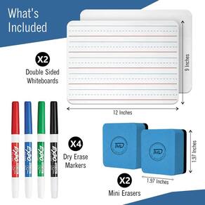 Conjunto de quadro branco e marcadores apagáveis a seco, 2 quadros apagáveis a seco, quadro branco 4 marcadores apagáveis a seco de ponta fina e 2 mini apagadores a seco, quadro branco pequeno e marcadores apagáveis a seco com borracha