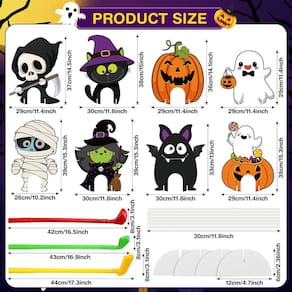 Você pode decorar sua casa com essas decorações de jardim ao ar livre de Halloween e outros suprimentos para festas de Halloween, como banners de Halloween, adesivos de parede para morcegos de Halloween e kit de arco de balão de Halloween para criar uma atmosfera assustadora e charmosa de festa de Halloween.