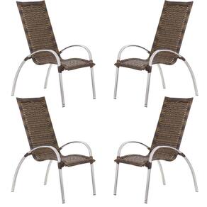 Conjunto de Poltrona Em Alumínio Para Área Varanda, Piscina, Churrasqueira Trama - Bege Médio