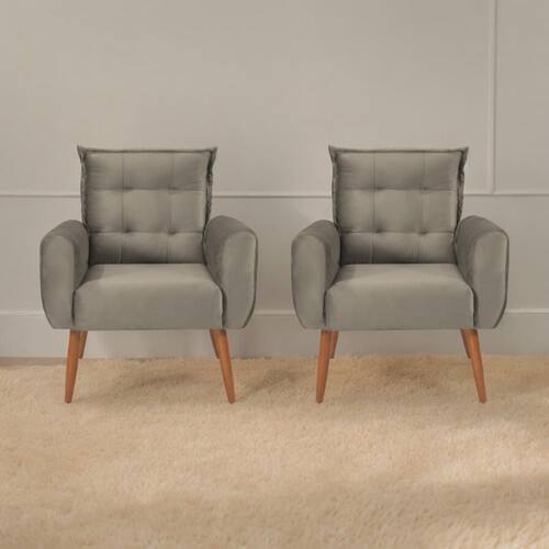 Conjunto De Poltronas Decorativas Atlas Veludo Cappuccino