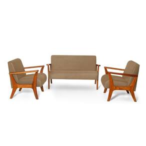 Sua base e braços são confeccionados em Madeira Maciça Lyptus Grandis, proveniente de reflorestamento, com acabamento em selador nogueira fosco. Seu assento e encosto são produzidos em tecido Suede Veludo, dando um toque suave e macio ao móvel, com espuma certificada densidade (D28) e percinta elástica, matérias-primas que garantem maior resistência e durabilidade ao produto. Além de contar com sapatas plásticas, ideal para a proteção do piso contra riscos.