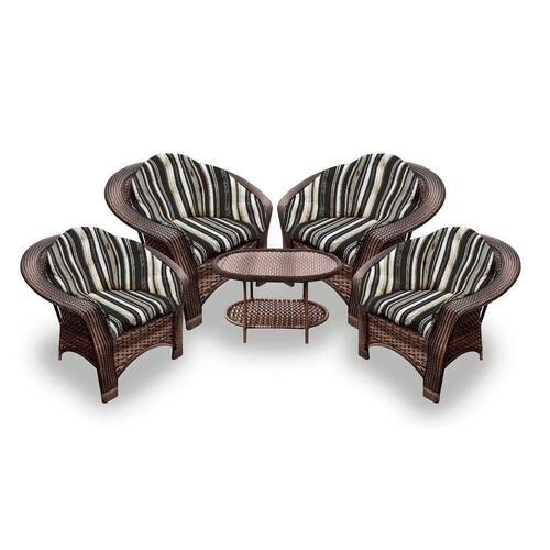 As almofadas de assento e encosto são em tecido impermeável, que bloqueia líquidos, poeiras e fungos, não sendo aconselhável a permanência de estofados em ambiente externo, expostos a intempéries climáticas (chuva).